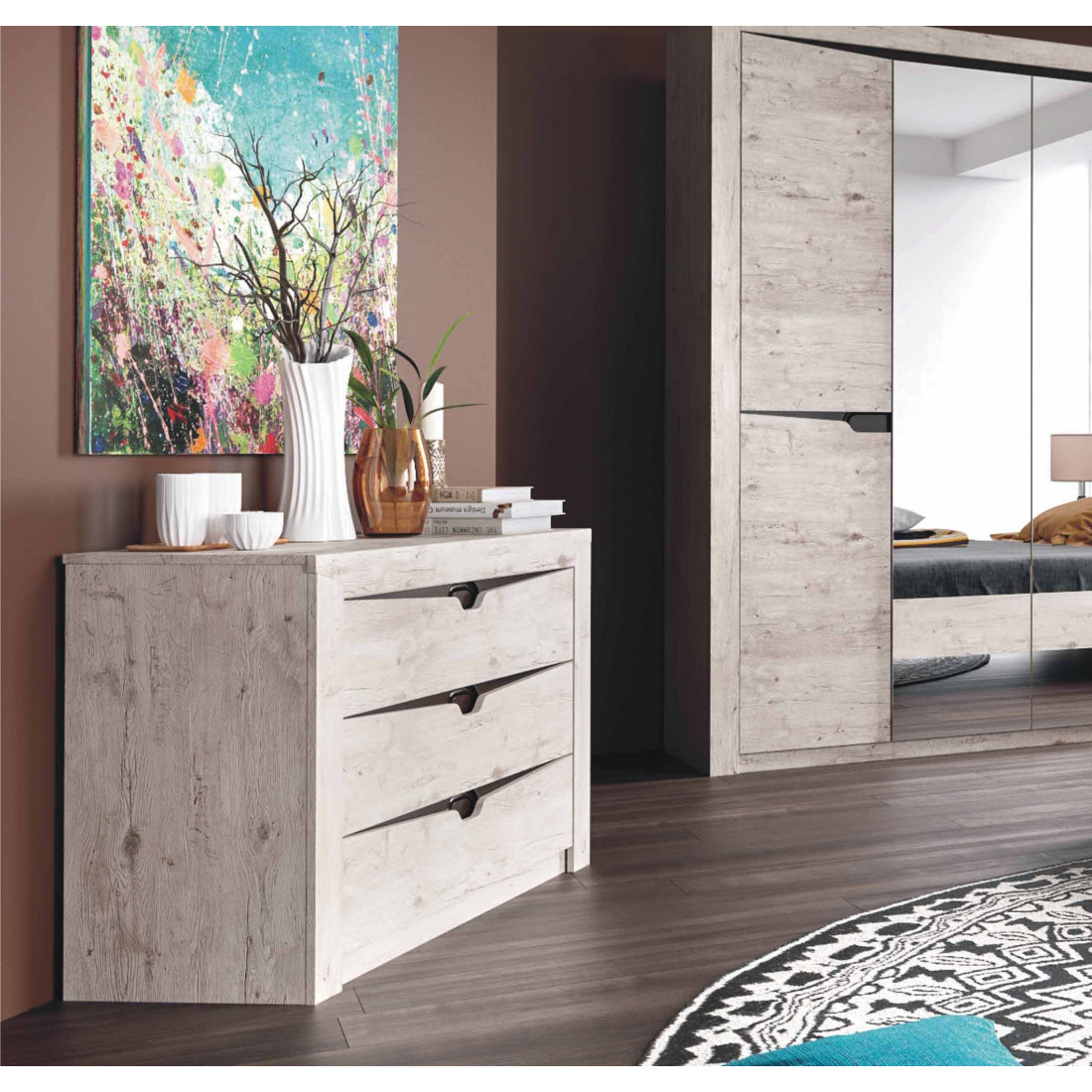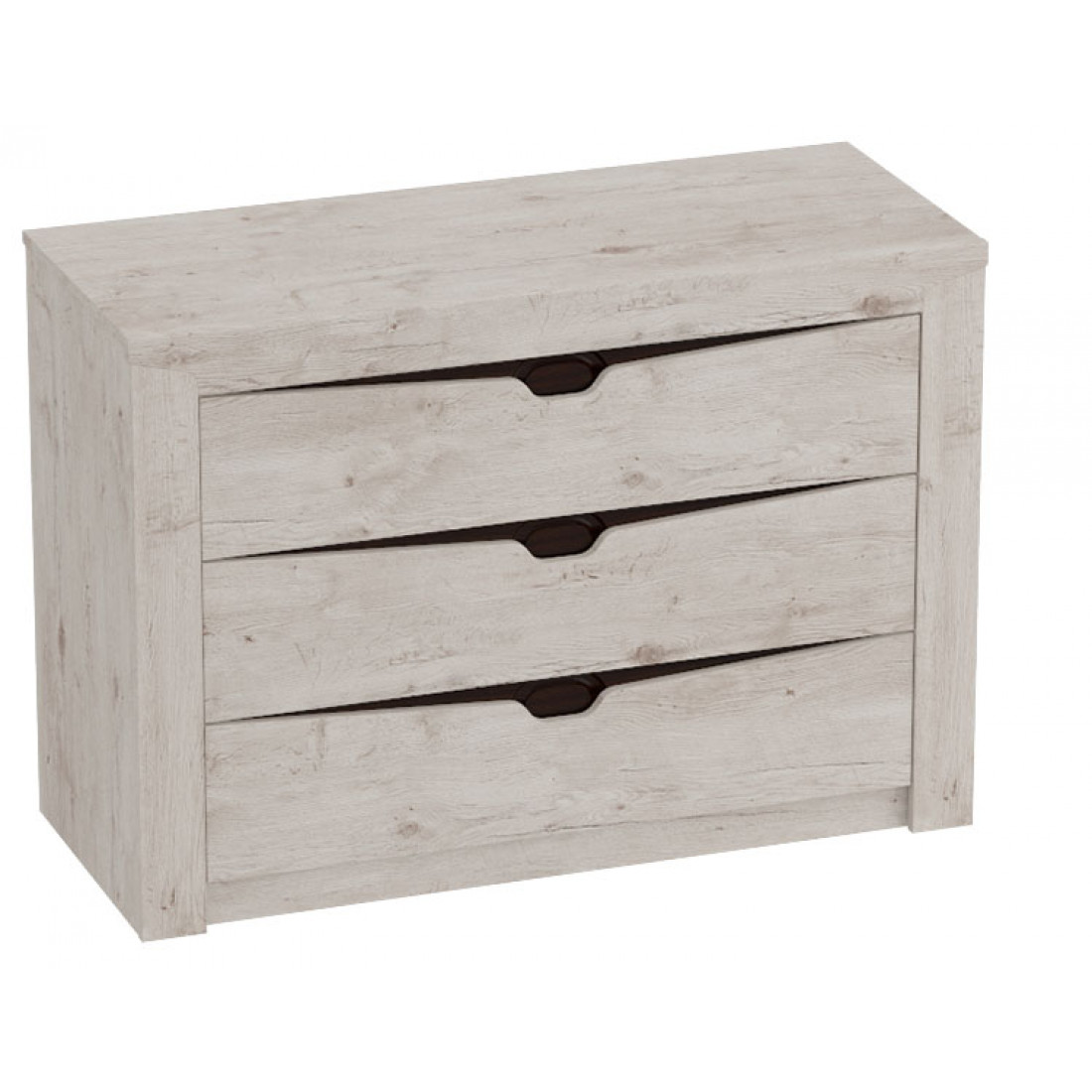 Комод с тремя ящиками из коллекции Соренто порадует ценителей лаконичных форм своими простыми, современными линиями и приятной светлой деревянной текстурой,создающей чувство покоя и комфорта в вашем доме. Вместительные отсеки предназначены для объемных вещей: постельного белья, полотенец, оптимально подходят для вертикального хранения и органайзеров простанства.