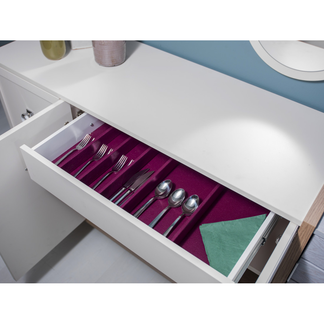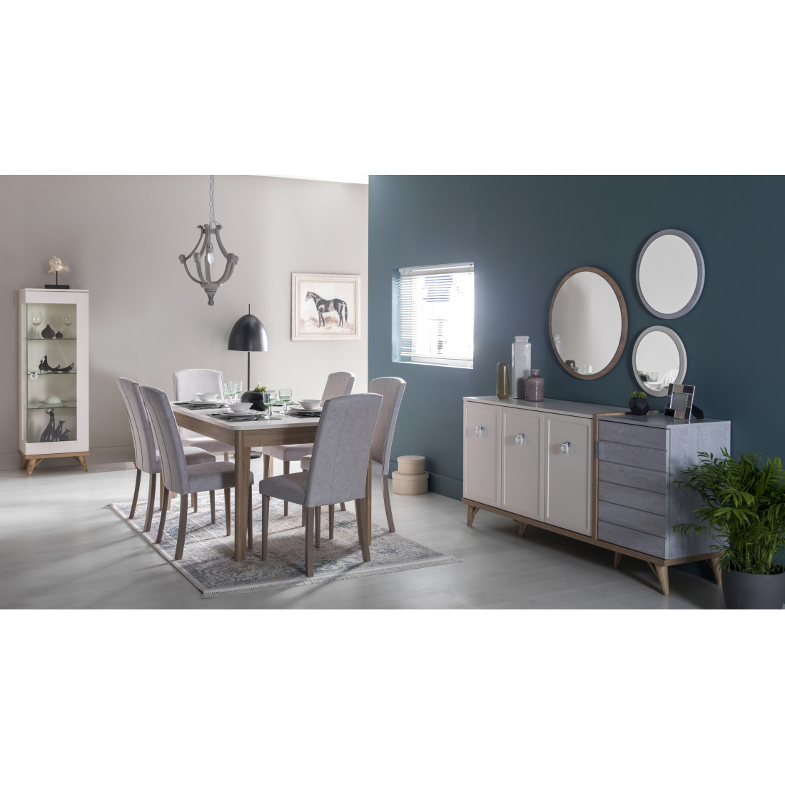 Широкий буфет для посуды Мавенна в современном стиле прованс от турецкой фабрики Bellona придаст дополнительного одобрения за вместительность и функциональность. Снаружи прилавок выполнен в сочетании молочного цвета и серой имитации горизонтальных досок, с декоративной отделкой цвета орех. Внутри в широком отделении выдвижной ящик с разделителями для столовых приборов, в узких отделениях- полка.