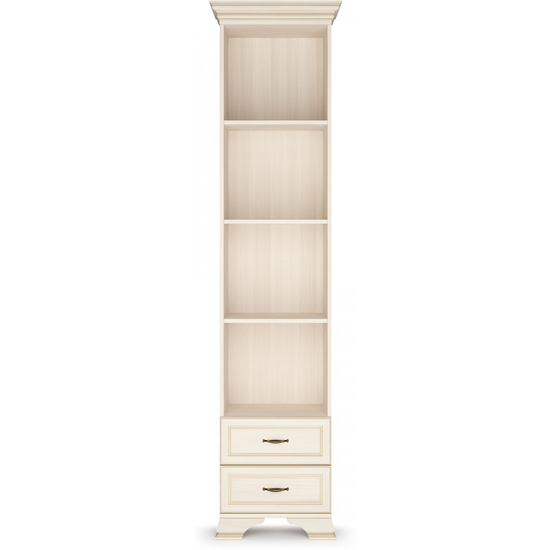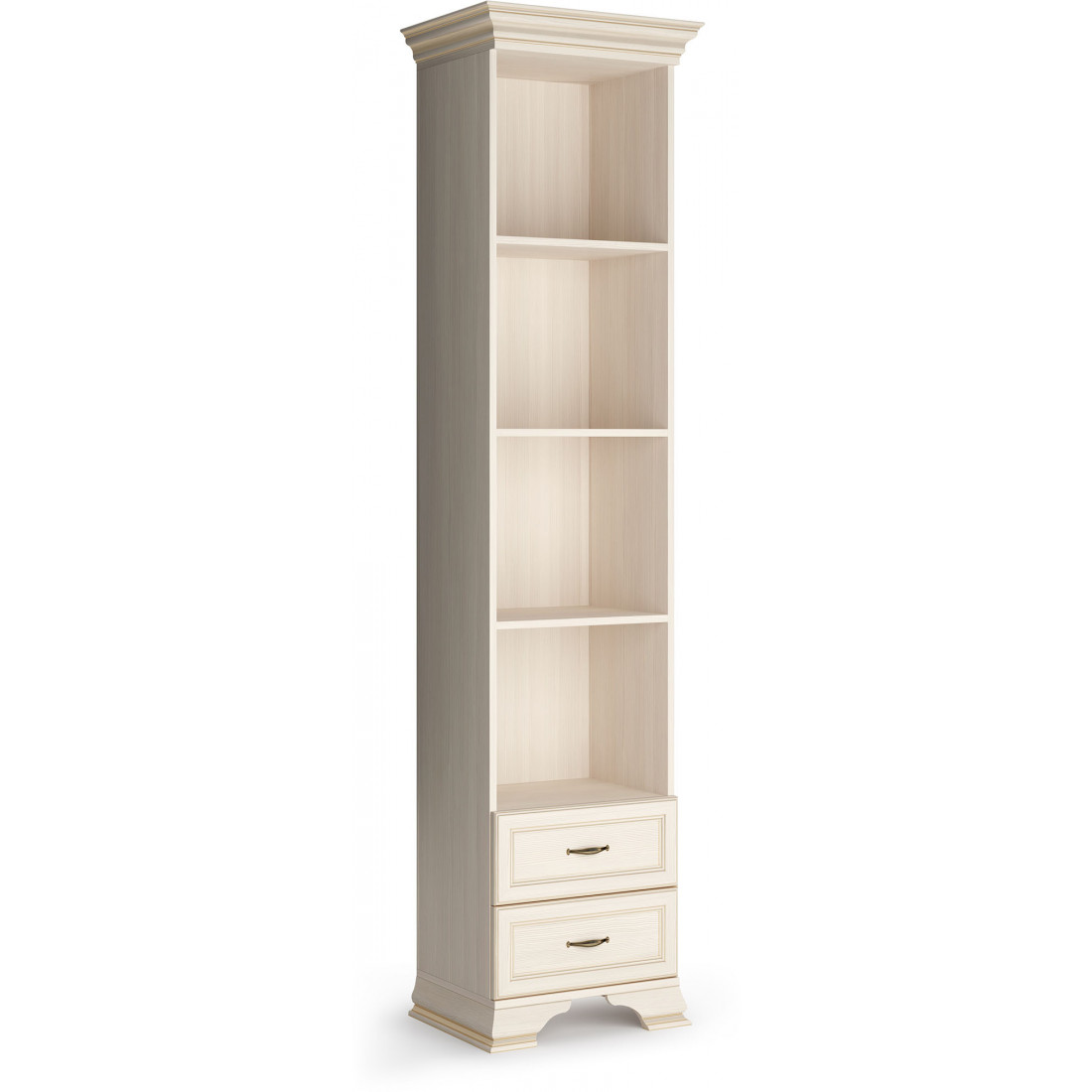 Коллекция производится в текстуре «бодега белый» с эффектом золотого патинирования. Облик «Сиены» дополняют рамочные фасады и карниз в классическом стиле, а также эффектные опоры из МДФ. Мебель комплектуются металлической лицевой фурнитурой премиум-класса в цвете «старая бронза» и надежной крепежной фурнитурой.